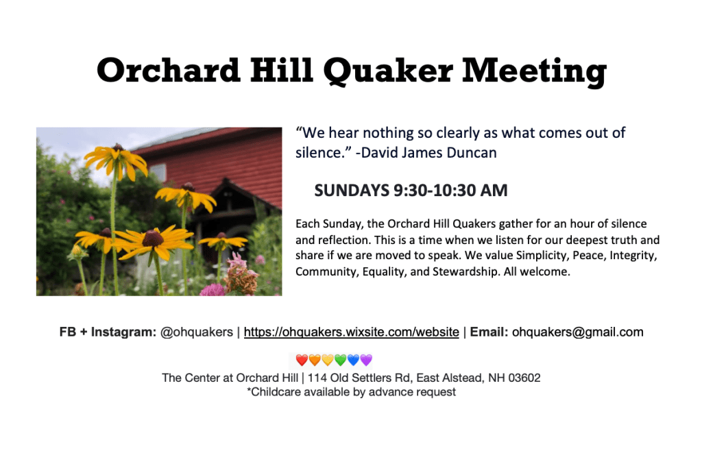 A Quaker Congregation in Putney, Vermont ~ Worship, Fellowship, Education, Activist Support